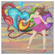 Tänzerin-Musik-Graffiti-Wand-Gewebe Stoff