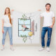Desteis Yoga Thema Illustration einer Frau, die die Tänzerin Pose / Natarajasana. Die Frau ist auf einem Bein stehend, während ihr anderes Bein nach oben reicht und sich mit einem ihrer Hände verbindet. Die andere Hand der Frau zeigt nach vorn, während sie sich ausbalanciert. Die Frau trägt einen rosa Panzeroberteil und dunkelgraue Capri-Leggings, die ihre Kälber und Zehen aussetzen. Das braune Haar der Frau ist auf einem Knochen hinter ihrem Kopf mit einem braunen Haargummi gefesselt. Die Frau befindet sich in einem modernen Zimmer mit drei großen Fenstern und großen grünen Pflanze. Die Frau ist auf einer rosa Yoga-Matte stehend. Neben der Frau gibt es auch einen runden, gelben Trainingsball. Die Hintergrundfarbe ist hellgrau, kann aber auf Wunsch auch in jede andere Farbe geändert werden. Es gibt auch einen personalisierbaren Textbereich für einen Namen oder einen anderen benutzerdefinierten Text.