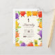 Dieses Design ist Teil der Kindergeburtssammlung "Dancing Fruit". Es verfügt über niedliche Schreibwaren mit tropischen Aquarellfrüchten wie Papaya, Trauben, Erdbeeren, Orangen und Ananas sowie Blätter und musikalische Noten. Ideal für die Geburtstagsfeiern eines Jungen oder Mädchens.