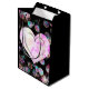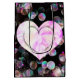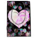 Sagen Sie ihnen, sie lassen Ihr Herz mit diesem hübschen, romantischen Herz tanzen, schwebend zwischen Glitzer und leuchtenden Blasen auf schwarzem Hintergrund.
