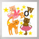 Tanzende Katzen T - Shirt, Hoodies, Tasse, Mousepads, Cards, Aufkleber, Schlüsselanhänger, Totentaschen, Magnete, Knöpfe, Kissen, Uhren und mehr mit drei Katzen, zwei in Tutus, gelbe Sterne und Text, der MEOW liest!