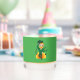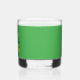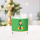 Whiskey Glass mit einer Illustration eines lächelnden, fröhlich tanzenden Kobold mit einem grünen Anzug, einer Bogen-Krawatte und einem Bowlerhut; mit schwarzen Noten und einem gelben und orangefarbenen Regenbogen im grünen Hintergrund. Ein perfektes Design, um den St. Patrick's Day zu feiern!