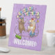 Niedlich tanzende Mäuse auf einem Geburtstagsfeier-Begrüßungsschild. Verwenden Sie "Personalisieren Sie diese Vorlage", um die "It's Rachel's 12. Geburtstagsparty! WELCOME" Text und erstellen Sie ein einzigartiges, individuelles Party Accessoire. Ein Schild mit zwei glücklichen Mäusen in Party Hüten, tanzend als Konfetti und ein Band fallen um sie herum, mit Ballons verstreut auf dem Boden, mit einem blumigen Hintergrund.