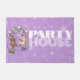 Niedlich tanzende Mäuse an einer Geburtstagstür. Verwenden Sie "Personalisieren Sie diese Vorlage", um den "It's Rachel's 12. Geburtstag! PARTY HOUSE" und erstellen Sie ein individuelles Party-Accessoire. Wandkunst mit zwei glücklichen Mäusen in Party Hüten, tanzend als Konfetti und ein Band fallen um sie herum, mit Ballons verstreut auf dem Boden, mit einem blumigen Hintergrund.