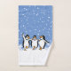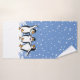Dancing Pinguins Design Badetuch Set mit anpassbarer Hintergrundfarbe und Text.