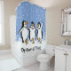 Dancing Pinguins Design Duschvorhang mit anpassbarer Hintergrundfarbe und Text.