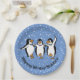 Pinguine tanzen in Schnee-Design Papierplatte mit anpassbarer Hintergrundfarbe und Text.