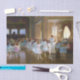 Dieses Design zeigt ein Gemälde des französischen Künstlers Victor Gabriel Gilbert (1847-1933). Es zeigt eine Gruppe kleiner Kinder in einer großen Halle, die an Tanzkursen teilnehmen. Sie tragen elegante Kostüme: Zum Beispiel tragen einige Mädchen Kleider mit rosa Bögen, während die jüngeren Mädchen pastellblaue Kleider tragen. Sie tanzen auf einem schönen Holzboden, der vor kurzem poliert wurde. Im Hintergrund spielt ein Orchester die Musik, zu der sie tanzen. Eltern und andere Erwachsene schauen sich auch die Show an.