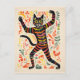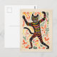 Tanzskeleton Katze Sonniges Halloween Postkarte. Feierte das Leben in seiner Umarmung des Todes.