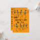 8 glückliche Skelette in Top-Hüten, die ihr Bestes geben, um eine Ziegfield-Chorlinie nachzuahmen, bitten Sie, "Nimm deinen Hut und mach mit dem Spaß". Alle für ein Party notwendigen Details sind auf der Rückseite dieser orangefarbenen Einladung gedruckt. Füllen Sie einfach die Textfelder mit den zu druckenden Angaben aus - oder löschen Sie diese Felder und füllen Sie die Angaben per Hand zu einem späteren Zeitpunkt aus.