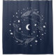 Zwei Wale auf dunkelblauem Hintergrund mit einem Mond und Sternen.
