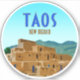 Zeigen Sie die lebendigen bräunlichen und blauen Pueblos vor dem Hintergrund der Berge in Taos, New Mexico, USA als Aufkleber als Memento eines der beststen Standorte Amerikas!