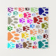 Überall drucken Bilder von Hundepfoten. Farbvolles Design im Cartoon.