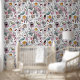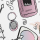 Tapete mit einem modernen Muster verschiedener niedlicher Kosmetikartikel.