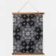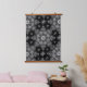 Dieses Tapestry hat den Druck eines originalen Fliesendesigns. Die Farben sind weiß und grau auf einem schwarzen Hintergrund. Das Design ist diagonal und wiederholt sich, sodass jede Ecke ein Viertel der Medaille zeigt. Diese Medaille wurde vom orientalischen Teppich des Schöpfers inspiriert. Das Fliesendesign stammt vom Oregon Tile Maker Fay Jones Day.