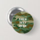 Tarnungsfarbmusterentwurf knöpft | Camouflage. Jägergrün-Camouflagefarben mit personalisiertem Text. Armee-/Militär-/Jagdthema.