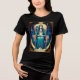 T-Shirt in The High Priestess, ein Tarot-Archetyp, sitzt auf einem verzierten Thron, mit einem leuchtenden Kristall. Sie trägt eine aufwändige Kopfbedeckung mit goldenen Akzenten. Eine Eule, die Weisheit symbolisiert, sitzt neben ihr.