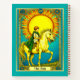Journal in einer Illustration der Tarot-Karte "Die Sonne", die eine strahlende Sonne darstellt, die den Himmel beherrscht, ihre goldenen Rochen, die einen Jungen umgeben, der auf einem weißen Pferd reitet. Er symbolisiert Unschuld und Vitalität, während der lebendige blaue Hintergrund Freude und Klarheit ausstrahlt.
