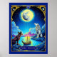 Poster in einer modernen Interpretation des Mondes, einer großen Arkana, die Illusion, Intuition und das Unbewusste verkörpert. Es bedeutet Unsicherheit, verborgene Wahrheiten und die Navigation durch Schatten, das Vertrauen in Intuition zu stärken, um tiefere Erkenntnisse und Klarheit inmitten von Verwirrung zu finden