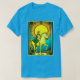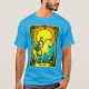 T-Shirt in einer Abbildung der Tarot-Karte "Die Sonne", die eine strahlende Sonne darstellt, die den Himmel beherrscht, ihre goldenen Rochen, die einen Jungen umgeben, der auf einem weißen Pferd reitet. Er symbolisiert Unschuld und Vitalität, während der lebendige blaue Hintergrund Freude und Klarheit ausstrahlt.