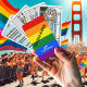 Tarot-Regenbogenflagge zusammen mit LGBT in einem Spielkarten