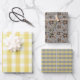 Tartan flower yellow grey set wrapping paper geschenkpapier set