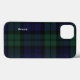 Schöne iPhone Gehäuse in der dunkelblau und grün schwarz Watch tartan kariert gemacht. Personalisieren Sie den weißen Text, indem Sie die links Seite hinunter laufen, für sich selbst oder als großartige Geschenkidee. Stilvolle Art, Ihr elektronisches Gerät zu schützen.