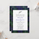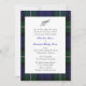 Karierte Hochzeitseinladung des traditionellen schottischen Tartan, erfolgt mit dem reizenden blauen und grünen Tartan des Forbes Clans. Ein Weiß farbiger Textbereich, in der Mitte hat einen silbernen Tonfarnwedel an der Spitze. Text ist in Schwarzem und im Blau und ist zum Anzug Ihr Hochzeitsbedarf völlig kundengerecht. Personifizieren Sie Text zum Anzug Ihr Bedarf.