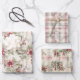 This set of three Christmas wrapping papers offers a festive blend of natural elegance, cozy charm, and timeless beauty. Two designs feature hand-painted pine branches, red berries, and poinsettias layered over soft plaid backgrounds in muted tones of black, red, and ivory—bringing warmth and seasonal cheer with a classic, woven feel. The third design showcases a vintage-inspired floral pattern with watercolor-style blooms in pink and red, delicate green foliage, and bright berry clusters set against a light, textured backdrop reminiscent of weathered wood. Together, these patterns wrap your gifts in tradition, artistry, and holiday spirit.