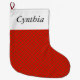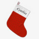 Traditioneller Tartan WeihnachtsStrumpf. Rotes u. grünes kariertes diagonal gestreiftes Muster. Kundengerechter Name gegen einen weißen Hintergrund mit einem roten Streifen.