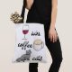 Diese Tasche zeigt handgezeichnete Bilder und Schriften mit den Wörtern Weinkaffee-Katzen und Zeichnungen jedes einzelnen. Ideal für jeden, der Wein, Kaffee und seine Katze !