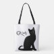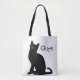 Schwarze Katze auf weißer Tasche mit schwarzen Gurten. Ideal für Katzenliebhaber oder für jeden, der die Einfachheit und den Kontrast von Schwarz und Weiß lebt. Eine lässige Tasche mit Stil.