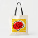 Ein Design im Stil der Mitte des Jahrhunderts mit einer Retro-Touch mit einem rote Rose-Souvenir aus einem spanischen Urlaub auf einem goldgelb-weiß gestreiften Hintergrund. Ein individuell anpassbares Design für Sie, um mit Ihrem eigenen Text, Bildern und Ideen zu personalisieren. Ein originelles digitales Kunstbild, das von Jess Perry bei QuirkyChic Retro erstellt wurde.