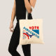 Spaß und farbenfroh, demokratische Esel mit roten und blauen Sternen und großer Text "Vote Democratic". Fügen Sie auf Wunsch Ihren eigenen Text oben hinzu. Erhältlich in verschiedenen Taschen-Stilen und Farben. Preisnachlässe bei Mehrfachbestellungen. Von D. Bennett aus Amerika.
