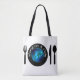 Tasche Lebensmittelgeschäft Tasche Blue Green World auf einem Teller von Tell3People. Hintergrundfarbe anpassen