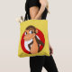 Tote Tasche mit Abbildung eines Schimpansen im roten Kreis, Abbildung von MaxiHarmony / Radka Kavalcova