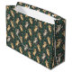 Tasche mit einem spielerischen Muster aus orangefarbenen und grauen Katzen auf dunkelgrünem Hintergrund, verziert mit kleinen grünen Blättern. Die Stimmung ist lustig und lebendig.