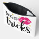 Ein gewagtes Design mit leuchtend rosa Lippen mit einer spielerischen Zunge, umgeben von golden funkelnden Sternen, gepaart mit dem Text "Tag of Tricks".