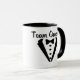 Team Groom Kaffeetassen machen eine großartige Begleiter Geschenke. Dieses Tux-Design ist großartig für alle Leute, die hart arbeiten. Fügen Sie dem perfekten Begleiter den Namen der Teilnehmer hinzu.