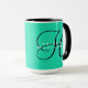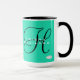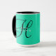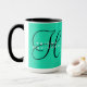 Spearmint grüne Kaffee Tasse mit Ihrem Namen in Weiß und initial in Schwarz. Farben können durch die Wahl der personalisierbaren und anpassbaren Optionen geändert werden. Design HAMbyWhiteGlove alias HAMbWG.