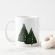 Personalisierte Winterferien Tasse mit Grünbäumen und zeichnend Spielzeug.