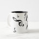 Die Tasse des Kaffees wird in einem Schwarz-Weiß-Musiknoten gedruckt. Passen Sie dieses Objekt an oder kaufen Sie, wie es ist.