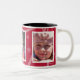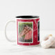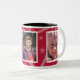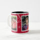 Foto Tasse mit dekorativen Rahmen hat Platz für drei Ihrer Lieblingsfotos. Jedes Foto ist mit Weiß gerahmt und es gibt einen Sternhintergrund, der beliebig farbig sein kann (einfach personalisieren/anpassen). Rot mit schwarzem Interieur.