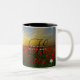 Mit Monogramm Kaffee-Tasse mit einem Sonnenuntergang über einem Hintergrund mit roten Blume, schwarzen Monogramm Initial- und Weißnamen. Schöne Büroaccessoires stehen separat zur Verfügung. Die Designer Trisha Haviland und Hamilton Smith, Marke und Shop-Namen sind "HAMbyWhiteGlove aka HAMbyWG und HAMbWG. Bestellen Sie bei Zazzle, wo die Produkterfüllung stattfindet. Kontaktieren Sie 203-302-0337 für Hilfe mit passendem Zubehör.