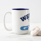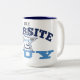 Tasse, weiß mit blauer Innenausstattung und das Logo des Website-Typ auf der Außenseite