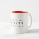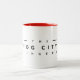 Weiße Tasse (rotes Innere) mit schwarzem FCS-Logo auf dem Gesicht.