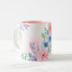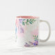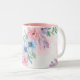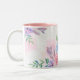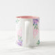 Diese hübsche Tasse zeigt hübsche Blume in Rosa, Lavendel, Blau und Grün und Akzente rund um die Tasse auf weißem Hintergrund. Die Dekoration der Beispiele ist in Rosa gehalten. Ändern Sie Ihre Auswahl in Farbe. Passen Sie diese Tasse an oder kaufen Sie sie wie geplant.