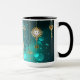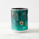 Gold, antike Schlüssel mit Gängen und Dials hängen an goldenen Ketten auf leuchtend grünem Hintergrund.