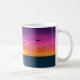 Ein Flugzeug schreibt eine friedliche Botschaft über einen farbenfrohen Sonnenaufgang.