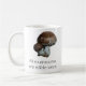 Foto von Cremini Pilzen (kleine portabella Pilze) mit den Worten "Alle Pilze sind essbar-einmal.", gedruckt unten. Design auf beiden Seiten der Tasse.
